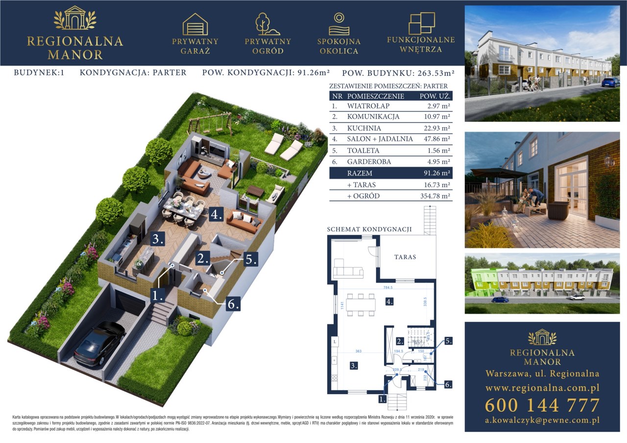 Dom w inwestycji Regionalna Manor oferuje przestronne wnętrza o powierzchni 264 m² oraz taras o powierzchni 17m2 . Budynek został zaprojektowany i zbudowany z dbałością o najdrobniejsze szczegóły, z wykorzystaniem nowoczesnych technologii i materiałów najwyższej jakości. Budynki są wykonane w wysokim standardzie deweloperskim, co daje Ci pełną swobodę w aranżacji wnętrz według własnych upodobań, gwarantując jednocześnie solidne wykonanie. Przemyślane układy pomieszczeń zapewniają komfort i funkcjonalność na co dzień.